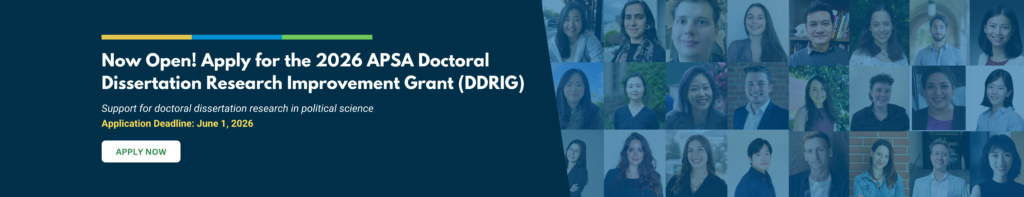 ‣ Now Open: 2026 APSA Doctoral Dissertation Research Improvement Grants (DDRIG)