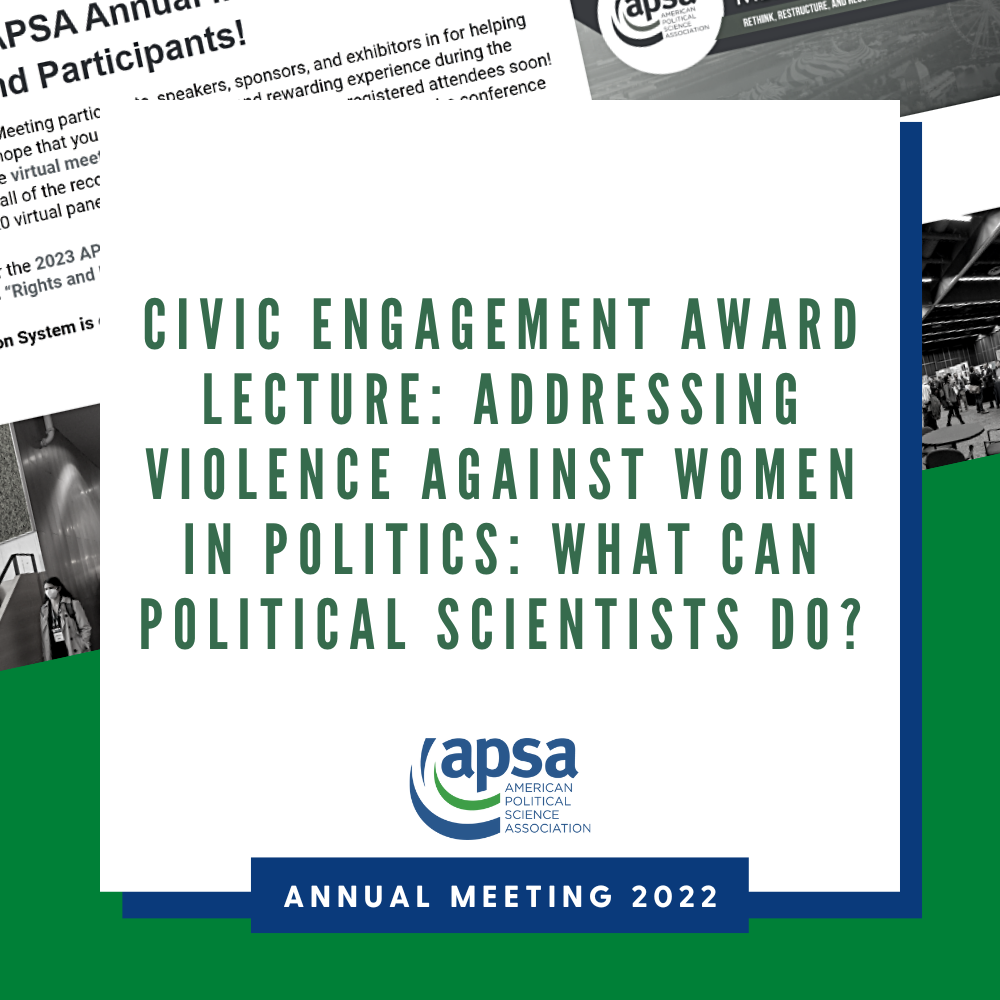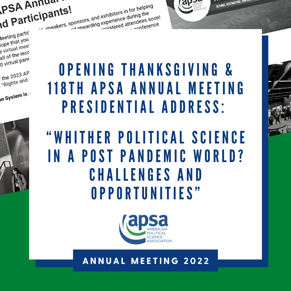 APSA is pleased to offer the following recordings from the APSA 2022 Annual Meeting for all APSA members as a benefit to the discipline.