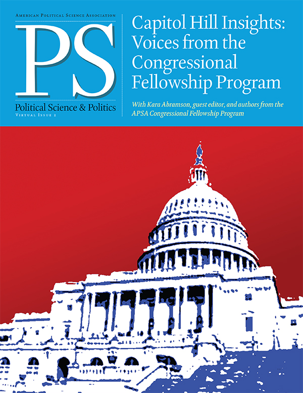 The second virtual issue of PS: Political Science & Politics is now available online! Called “Capitol Hill Insights,” the issue features articles written by alumni of APSA’s Congressional Fellowship Program (CFP) and published in PS between 2010 and 2015. Each of the 24 articles pivots to a unique perspective of the fellowship experience, providing rich details and first-hand anecdotes that clarify and explain how Congress and government work.