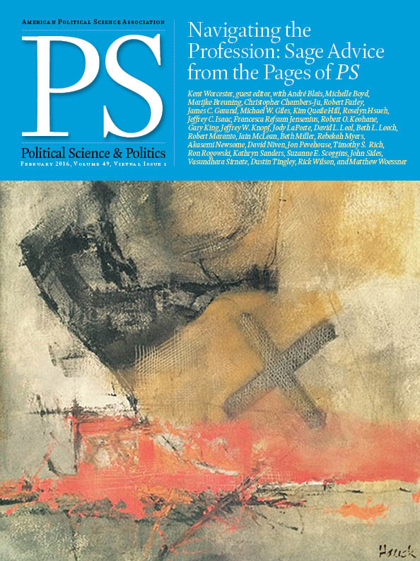 This first virtual issue of PS: Political Science & Politics brings together some of the journal’s most highly cited articles about the profession from more than a dozen past issues. This practical material spans numerous topics that especially apply to young scholars. From “ideas and debates” of political science as a vocation, to the “nuts and bolts” of preparing a literature review and publishing as a graduate student, this virtual issue has something both for scholars just beginning their studies and for academics early in their careers. Other topics include: