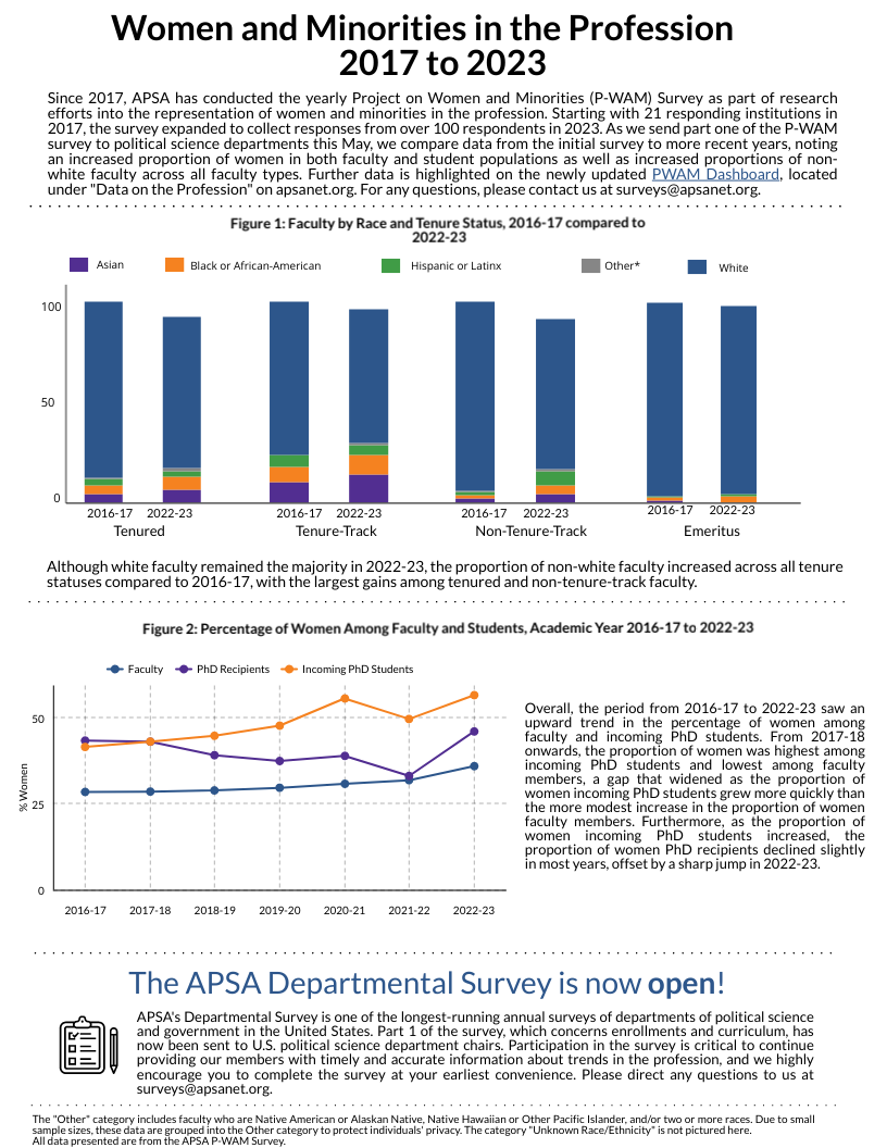 See this month’s chart below. To view Charts from previous months, click here or scroll down the page. Have questions or can’t find a specific chart? Email us at surveys@apsanet.org.
