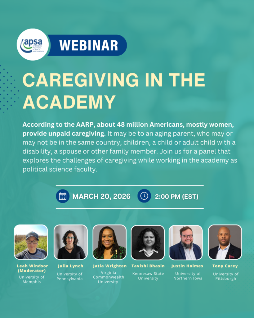 Caregiving in the Academy: An APSA Status Committee Virtual Workshop | Friday, March 20, 2026 | 2:00 PM (EDT)